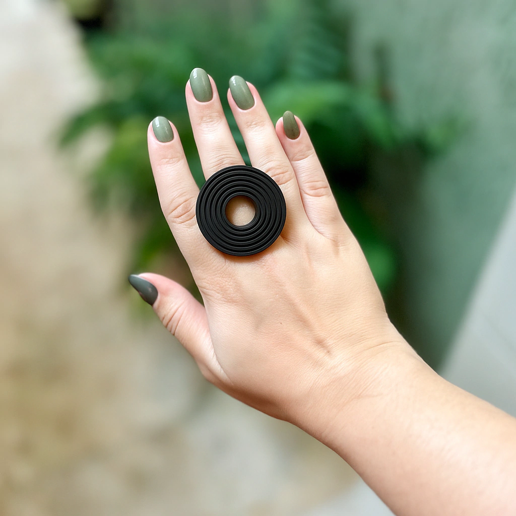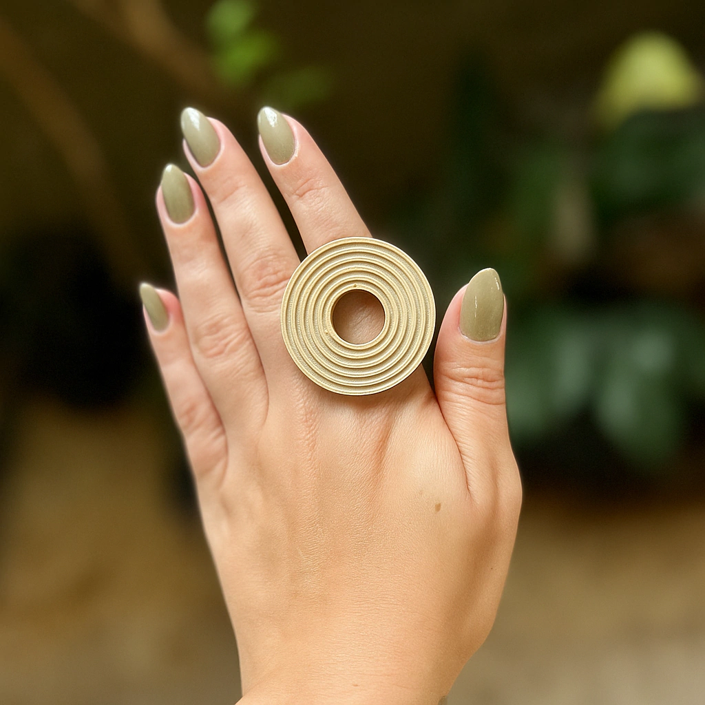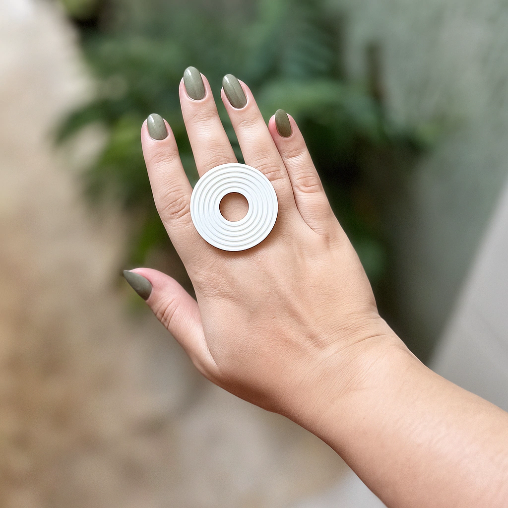 O Anel Bolha foi criado para mulheres que expressam sua personalidade através da moda. Com design autoral, este anel é impresso em 3D utilizando polímero plástico biodegradável, combinando sustentabilidade e estilo. Disponível em diversas cores vibrantes e tamanhos variados, é perfeito para quem busca um acessório moderno e consciente.