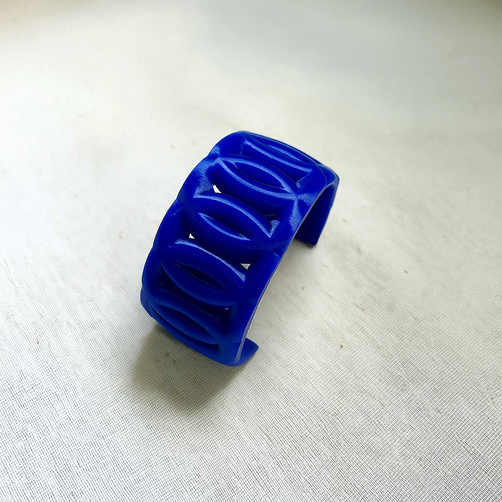 O Bracelete Mara faz parte da coleção Elas por Elas, criada para homenagear mulheres inspiradoras da família Honu. Produzido em impressão 3D com polímero plástico biodegradável, une design autoral e sustentabilidade.